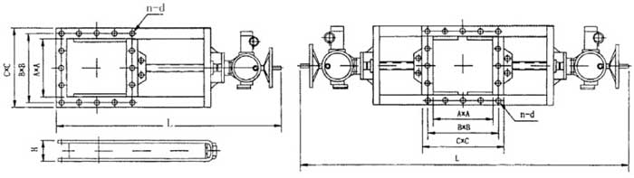 該閘門(mén)主要由框架、絲桿螺母、手輪、鏈輪、閘板、電動(dòng)頭組成,電機(jī)的轉(zhuǎn)動(dòng),使絲桿帶著絲桿螺母和閘板作水平方向的往復(fù)運(yùn)動(dòng),達(dá)到閥門(mén)的啟閉目的。該閘閥廣泛使用于建材、冶金、礦山等行業(yè)粉塵物料流量控制的管道上。是控制粉塵物料流量的理想設(shè)備。